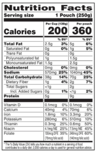 INGREDIENTS: Water, Parboiled Long Grain Rice, Orzo Pasta (Durum Wheat Semolina, Natural Flavor, Niacin, Ferrous Sulfate, Thiamine Mononitrate, Riboflavin, Folic Acid): Less than 2% of: Canola Oil†, Salt, Yeast Extract, Sugar, Onion*, Chicken Fat*†‡, Chicken Broth*†‡, Maltodextrin, Potassium Chloride, Modified Corn Starch, Broccoli*, Natural Flavors, Dried Soy Sauce (Wheat, Soybeans, Salt), Spices, Parsley*, Turmeric (Color), Vitamins and Minerals [Calcium (Calcium Carbonate), Iron (Iron Phosphate), Vitamin B3 (Niacinamide), Vitamin B1 (Thiamine Mononitrate), Folic Acid], Turmeric Extract (Color). *Dried. Adds a trivial amount of saturated fat† and cholesterol‡.