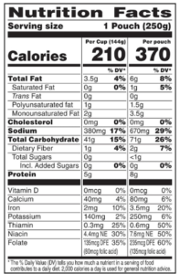 INGREDIENTS:  Water, Parboiled Long Grain Rice: Less than 2% of: Canola Oil†, Salt, Yeast Extract, Carrots*, Modified Corn Starch, Natural Flavors, Onion*, Maltodextrin, Parsley*, Chicken Fat*†‡, Citric Acid, Garlic*, Sugar, Cooked Chicken*†‡ (Chicken, Chicken Broth, Natural Flavor, Citric Acid), Spices, Safflower Oil, Vitamins and Minerals [Calcium (Calcium Carbonate), Iron (Iron Phosphate), Vitamin B3 (Niacinamide), Vitamin B1 (Thiamine Mononitrate), Folic Acid], Turmeric Extract (Color), Sunflower Oil, Lactic Acid. *Dried. Adds a trivial amount of saturated fat † and cholesterol.‡.