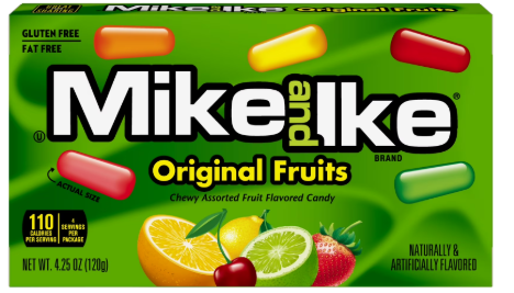 Weight 4.25 oz Reviews There are no reviews yet. Be the first to review “MIKE & IKE ORIGINAL FRUITS – BOX”Cancel ReplyYour email address will not be published. Required fields are marked *Your rating * Rate… Perfect Good Average Not that bad Very poor Name *Email *Your review * Save my name, email, and website in this browser for the next time I comment. Submit Δ