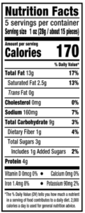 INGREDIENTS:  Cashews, Peanut Oil, Sugar, Contains 2% or less of Sea Salt, Rosemary, Garlic Powder, Onion Powder, Paprika, Silicon Dioxide (Anticaking Agent), Spices. Contains: Cashew. May Contain: Peanuts, Other Tree Nuts.