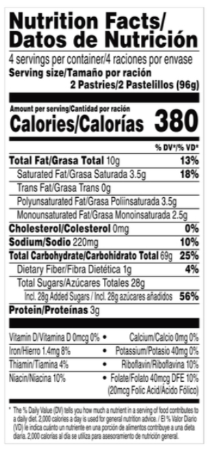 Enriched Flour (Wheat Flour, Niacin, Reduced Iron, Vitamin B₁ (Thiamin Mononitrate], Vitamin B2 (Riboflavin), Folic Acid), Corn Syrup, High Fructose Corn Syrup, Soybean And Palm Oil (with TBHQ For Freshness), Sugar, Dextrose, Contains 2% Or Less Of Modified Corn Starch, Cornstarch, Salt, Glycerin, Palm Oil, Leavening (Baking Soda, Sodium Acid Pyrophosphate, Monocalcium Phosphate), Strawberry Powder, Gelatin, Color Added, Natural And Artificial Flavors, Soy Lecithin, Xanthan Gum, DATEM, Confectioner’s Glaze, Red 40, Carnauba Wax, Red 40 Lake, Blue 1 Lake, Yellow 5 Lake, Yellow 6 Lake, Yellow 6, Blue 2, Citric Acid.