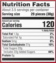 INGREDIENTS: SUGAR, CORN SYRUP, HYDROGENATED PALM KERNEL OIL; LESS THAN 2% OF: CITRIC ACID, TAPIOCA DEXTRIN, MODIFIED CORN STARCH, NATURAL AND ARTIFICIAL FLAVORS, COLORS (INCLUDES RED 40 LAKE, YELLOW 5 LAKE, BLUE 2 LAKE, YELLOW 6 LAKE, BLUE 1 LAKE, YELLOW 6, RED 40, YELLOW 5, BLUE 1), SODIUM CITRATE, CARNAUBA WAX.