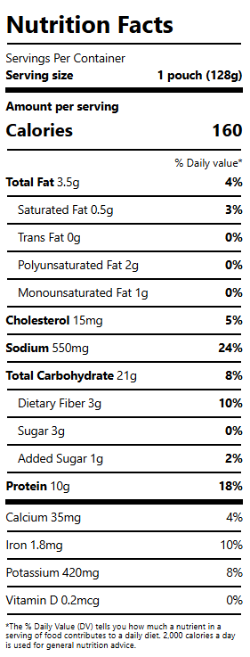 Light Tuna, Cooked Barley (Barley, Water), Water, Cooked White Beans (White Beans, Water), Tomatoes (Tomatoes, Tomato Puree, Tomato Juice, Salt, Citric Acid, Calcium Chloride), Tomato Paste, Carrots, Green Bell Peppers, Sunflower Oil, Contains 2% or Less of the Following: Salt, Onions, Sugar, Garlic, Modified Food Starch [Corn], Spices, Citric Acid, Natural Flavors Including Roasted Garlic, Basil, Tapioca Food Starch, Xanthan Gum, Citrus Fiber.